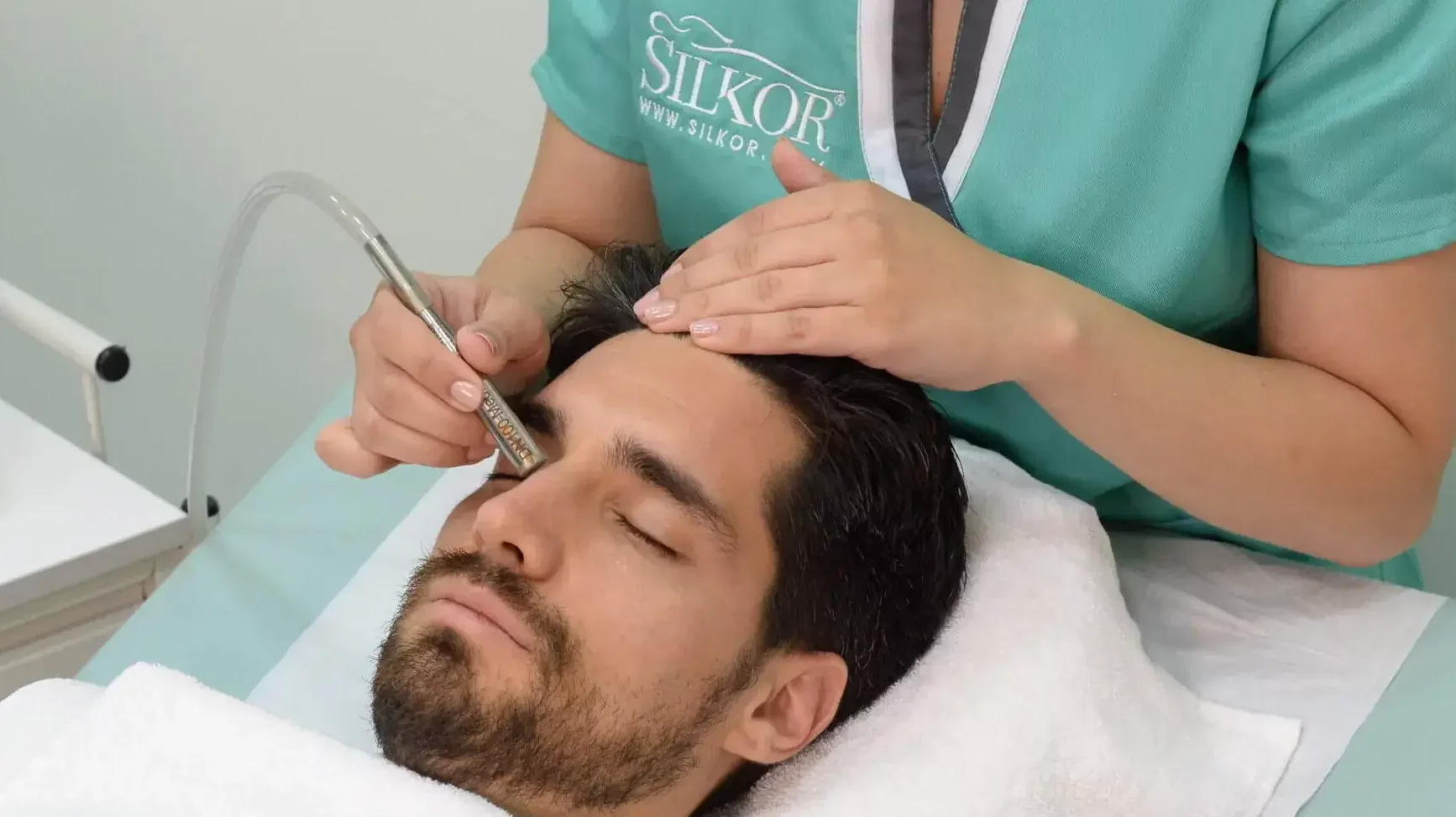 في سيلكور، لا تستخدم وحدة “التقشير الألماسي” الرمل أو بلّورات أكسيد الألومنيوم مثل التقنيات التقليدية لأنها أثارت العديد من مشكلات السلامة حيث يمكن استنشاق هذه الجزيئات مما قد يتسبّب في مشاكل مستقبليّة في الرئتين والعينين. يستخدم خبراؤنا المدرّبون من سيلكور الرؤوس الآمنة المرصّعة بالألماس حيث تتم إزالة الطبقة الخارجية من الجلد بينما يتم شفط الخلايا الميتة بنعومة، مما يوفّر لك بشرة ناعمة.