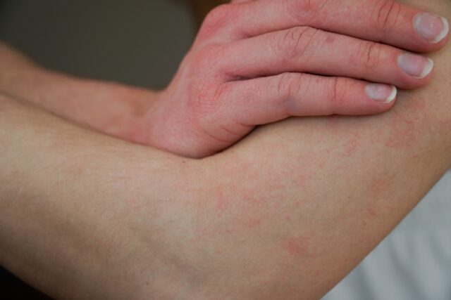 - احمراراً خفيفاً يُشبه أثر التعرّض لأشعة الشمس لفترة قصيرة.