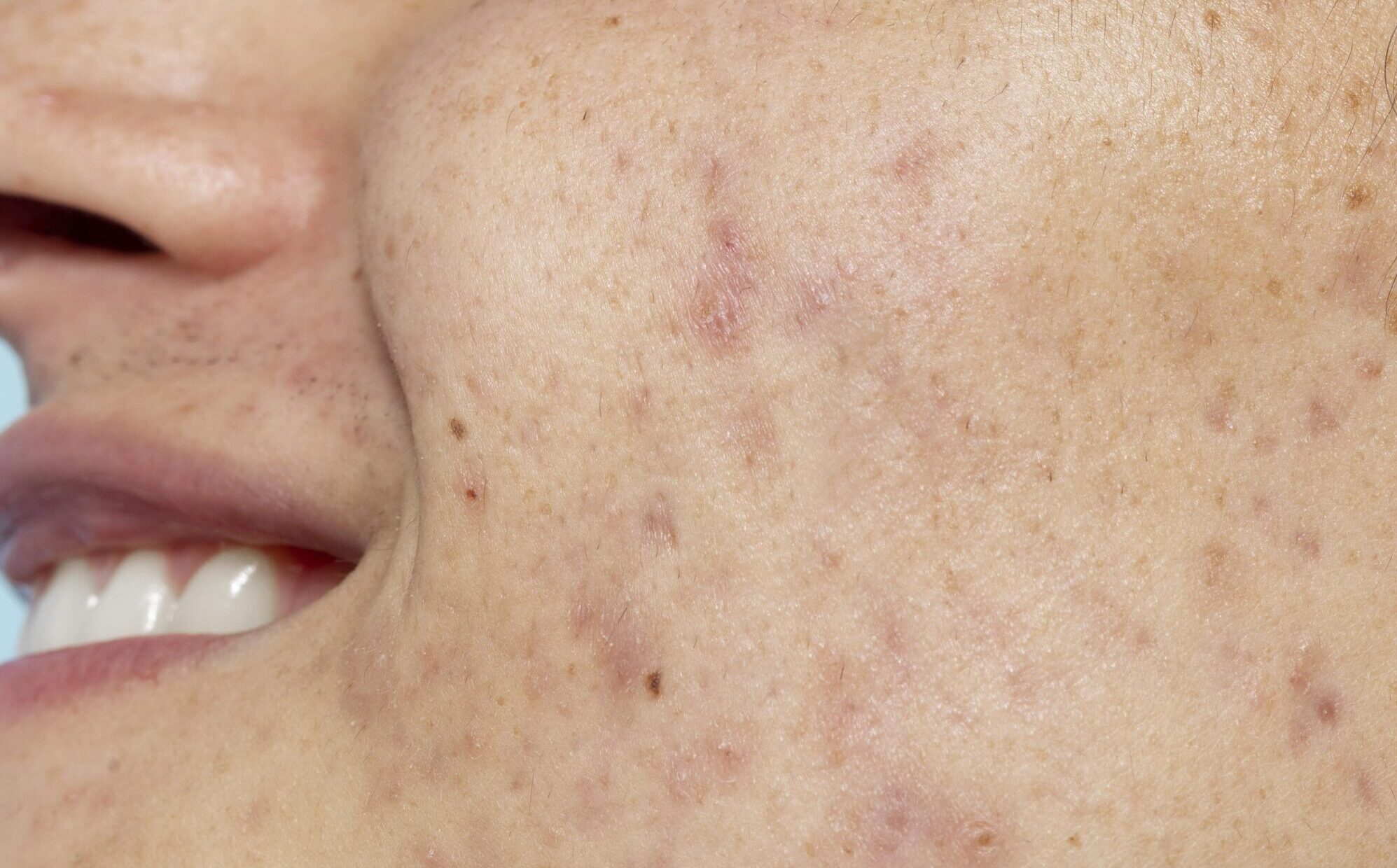 Acne happens when bacteria (Propionibacterium acnes) overgrow in clogged pores, feeding on skin oil and causing inflammation.